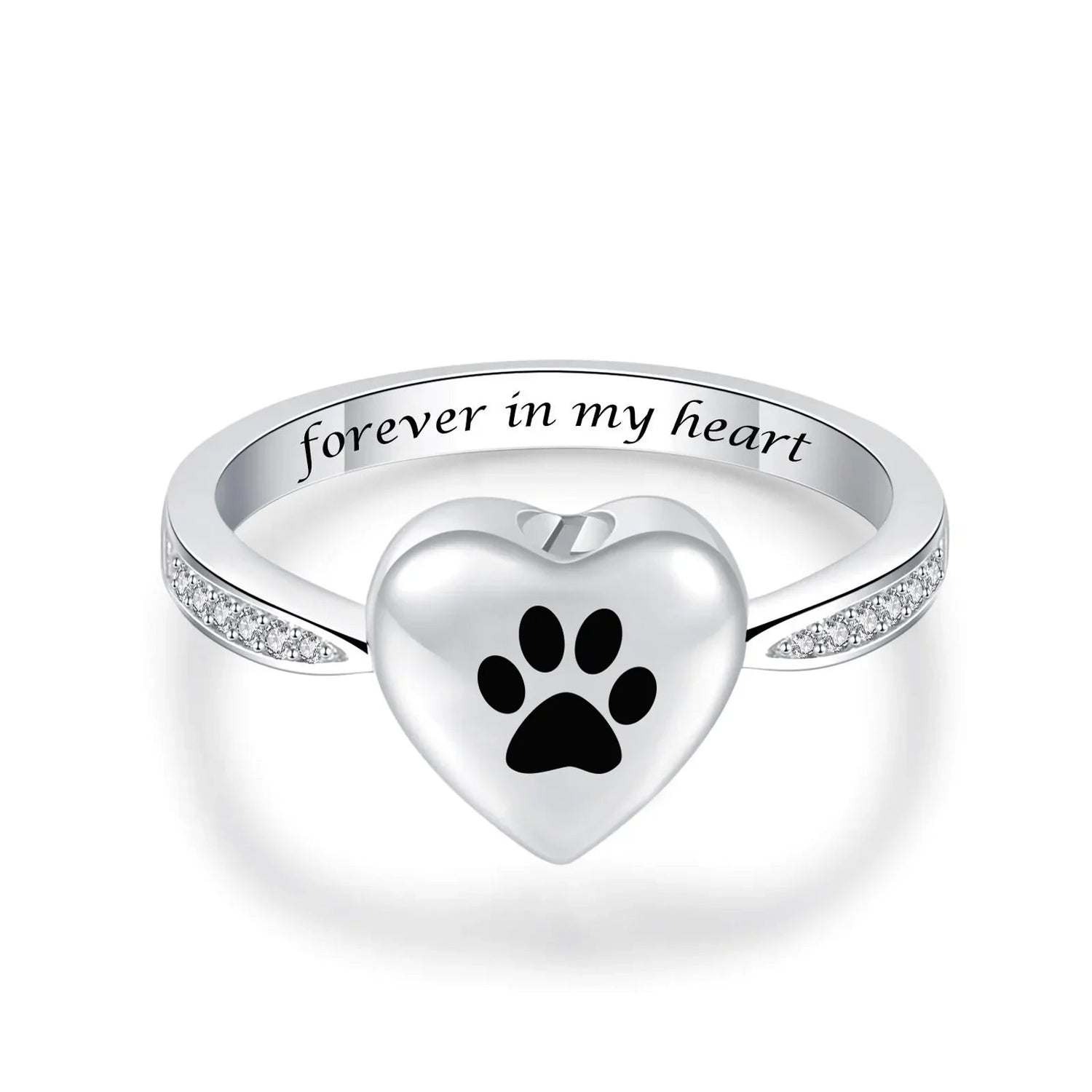 Pierścień z sercem miłosnym i odciskiem łapki – Biżuteria pamiątkowa po zwierzęciu do kremacji
